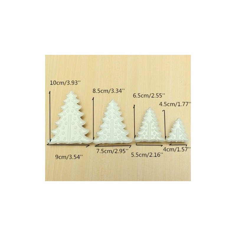 Cortador de galleta con texturizador con forma de Arbol de Navidad de 4 tamaños diferentes