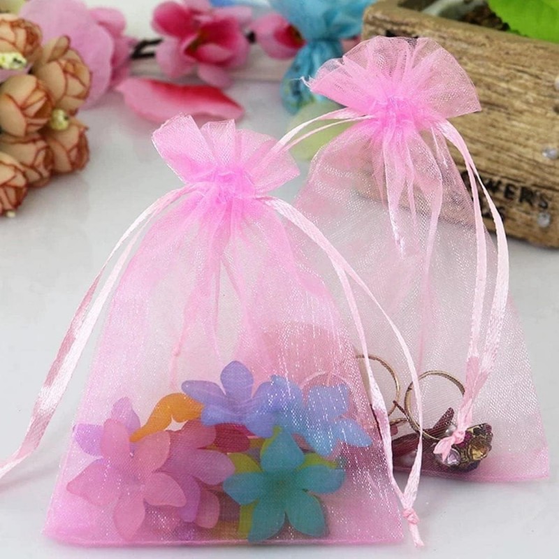 Las bolsas de organza con cintas son pequeñas y exquisitas. Se puede usar para almacenar sus joyas u otras cosas pequeñas.