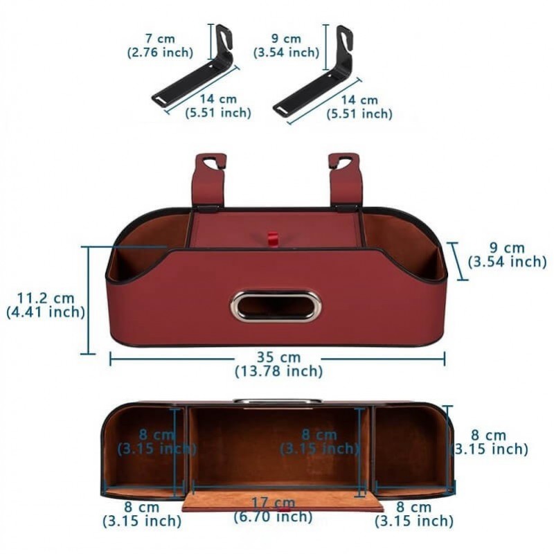 Con superficie de cuero puedesoportar diversas condiciones dentro de su automóvil, como derrames, manchas, rayones, calor y frío. El suave cojín de material flocado evita que los artículos colocados en el organizador del automóvil se deslicen y se muevan. Y la caja de almacenamiento del coche es resistente, duradera e incluso fácil de limpiar.